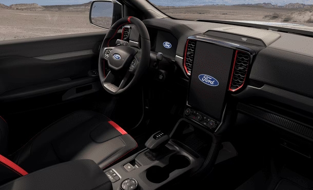 Điểm nhấn then chốt phần đầu xe là chữ Ford được thiết kế dạng khối nổi cỡ lớn. Đèn LED ma trận nổi bật trong đêm, cản trước bắt thẳng vào khung xe và tấm hợp kim chắn gầm siêu cứng, tất cả đều như đang sẵn sàng mở đường dẫn lối.